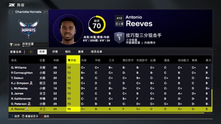 8月30日讯 今日NBA 2K26正式发布,黄蜂队球员能力值如下:三球87是球队最高,米勒82排在第二,布里奇斯和塞克斯顿均是80分列第三、第四。其余球员均在80以下,其中今年4号秀克尼佩尔能力值75。